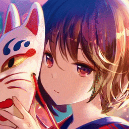 tags: girl, yukata, fox, mask, kitsune, brown hair, shrine, lofi, chill