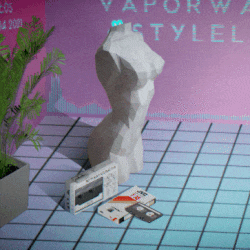 Own photomanipulation, minimalistic vaporwave scene.