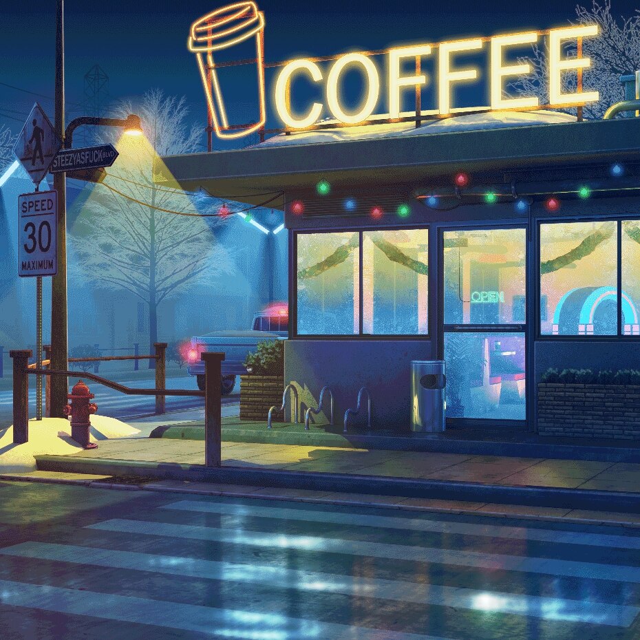 A relaxing coffee shop on a rainy winter night, with Aviino's "Plush" EP as a backing track.