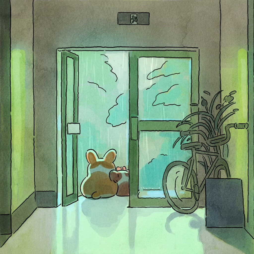 "Waiting out the rain"