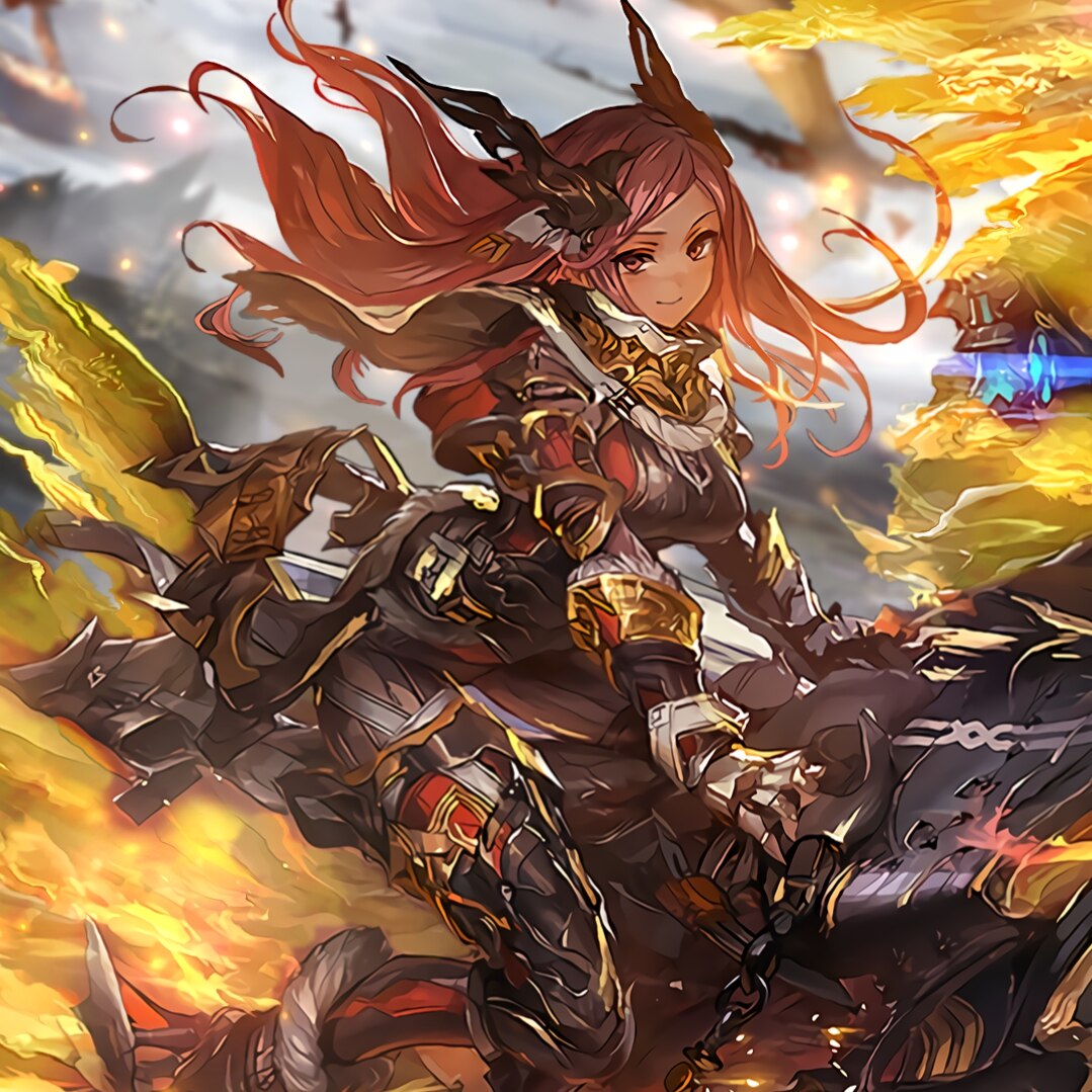 Phoenix Rider Aina from the game Shadowverse. Upscaled art taken from user ekhekh from the Shadowverse Subreddit.
